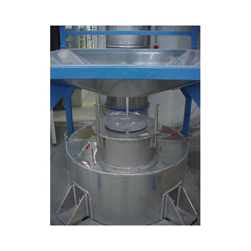 負(fù)壓除塵系統(tǒng)可保證無(wú)塵操作,包括一個(gè)負(fù)壓風(fēng)機(jī)和袋式過(guò)濾器(帶有壓縮空氣脈沖反吹系統(tǒng)用于清理布袋)。料斗的容積2200升帶有支座或支腿用于安裝料斗。